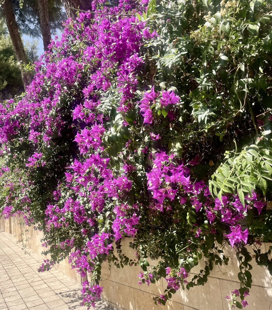 地中海沿岸でよくみられる花。暑さや乾燥に強く、庭や壁に絡んで咲く姿はとても印象的です。